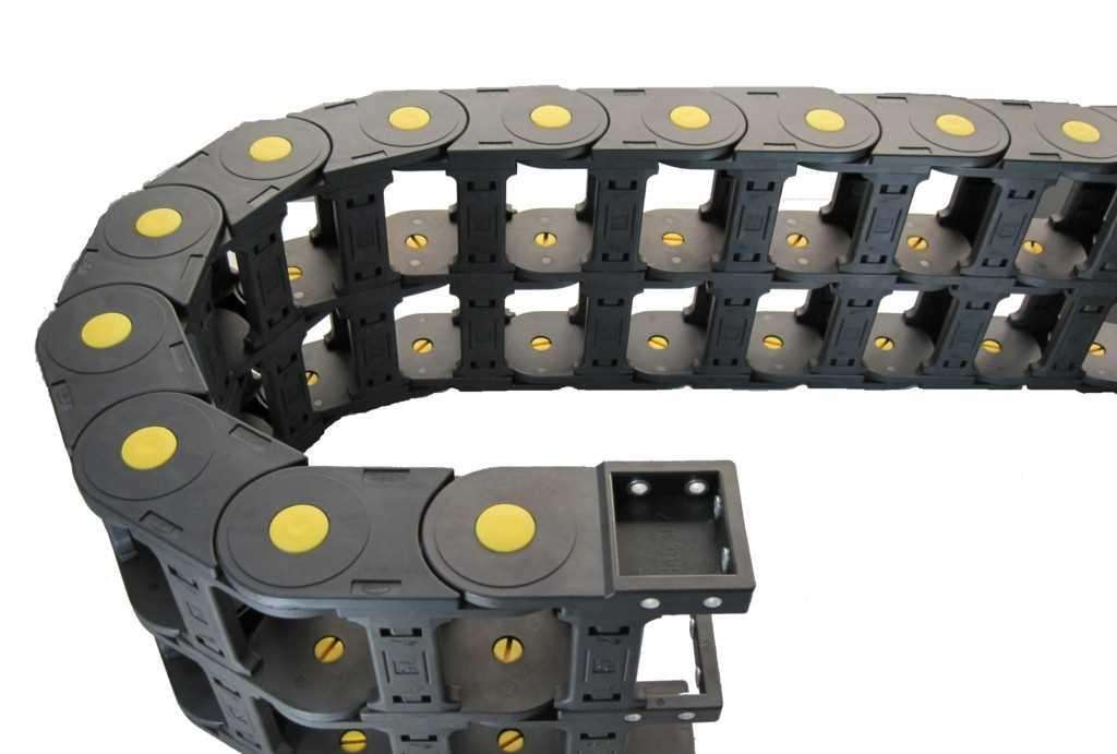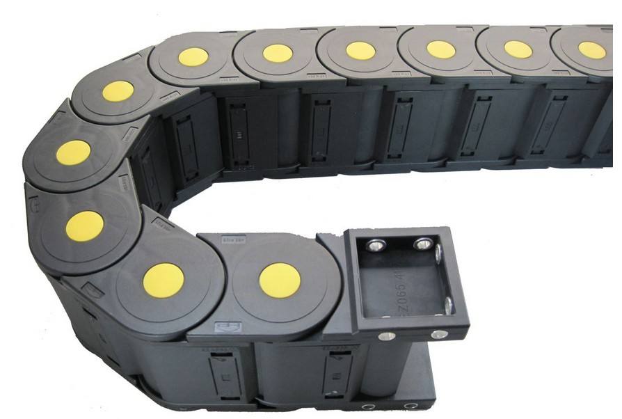 尼龍拖鏈的支撐板是尼龍拖鏈的潤滑問題的主要部件。尼龍拖鏈有三種支撐板的形式。尼龍拖鏈的拖鏈每節(jié)都能打開,便于安裝和維修。運動時噪音低、耐磨、可高速運動。適合于使用在往復(fù)運動的場合,能夠?qū)?nèi)置的電纜、油管、氣管、水管等起到牽引和保護作用。