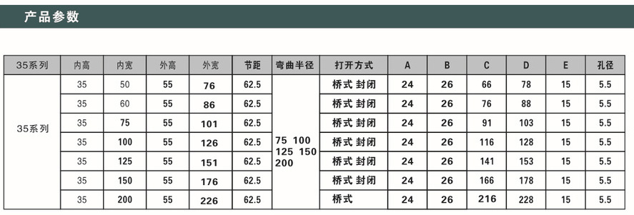 彎曲半徑:R75 R100 R125 R150 R200